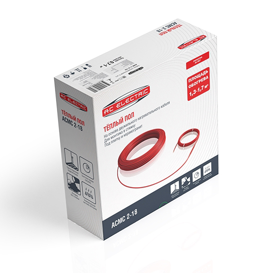 двужильный, в стяжку, степень защиты: IP68, сечение кабеля 1,2 мм, отапливаемая площадь 4 кв. м, приведенная потребляемая мощность 0,6 Вт