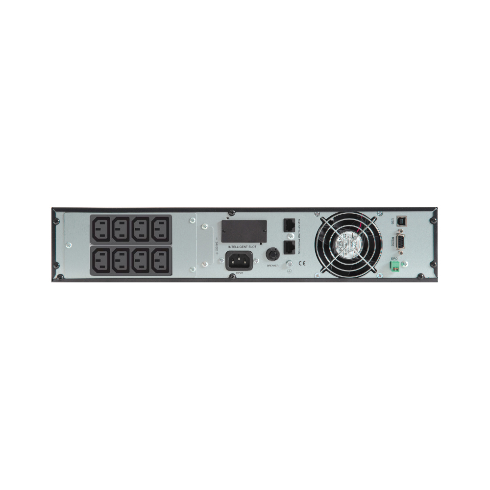 220 В,1500ВА (1350 Вт), Online, синусоидальная форма выходного напряжения, световая и звуковая индикация режимов работы, необходимое количество АКБ для работы — 3 шт. ёмкостью 40–120 Ач, ток заряда АКБ – 6 А, количество выходных разъемов — IEC C13 — 8 шт., дистанционный мониторинг по RS 232, USB, порт для платы релейного интерфейса, возможность подключения SNMP-модуля DL 801, функция удаленного аварийного отключения выходного напряжения (EPO), корпус под 19" шкаф, высота 2U или настольная установка