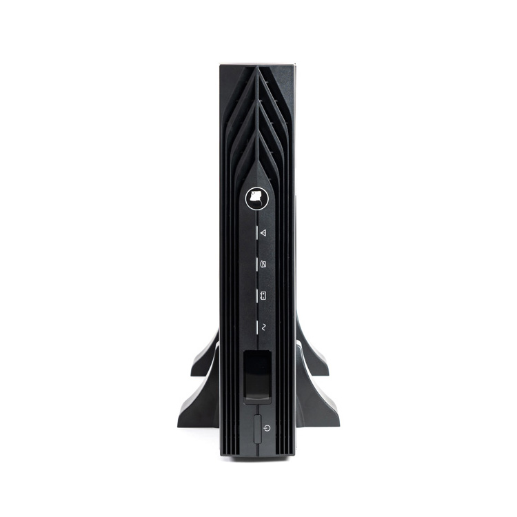 Особенности и преимущества: современный дизайн, информативный ЖК-дисплей, стандартные возможности коммуникации: двунаправленный коммуникационный интерфейс RS-232, порт связи USB, интеллектуальный порт для установки дополнительных коммуникационных модулей (платы релейного интерфейса, SMMP-адаптера и др.), разъем для подключения устройства дистанционного аварийного отключения питания (EPO), при запуске изделия и его эксплуатации в обычном режиме, контакты разъема должны быть замкнуты, универсальное исполнение и может быть расположено на рабочем столе в вертикальном положении или закреплено горизонтально в 19'' стойке телекоммуникационного шкафа.