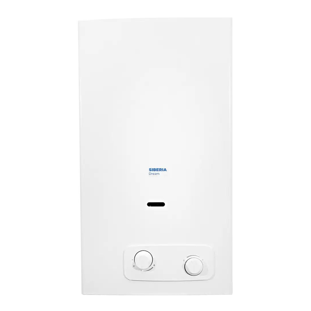 Siberia Dream с автоматическим розжигом — газовый водонагреватель используемый для быстрого нагрева и непрерывной подачи горячей воды в квартирах или частных домах. Работает на природном газе. На корпусе водонагревателя имеются два переключателя регулировки мощности нагрева и протока воды, а также дисплей, на котором отображается температура воды. Автоподжиг включает водонагреватель сразу, как только открывается кран с горячей водой. Розжиг работает независимо от сети.
